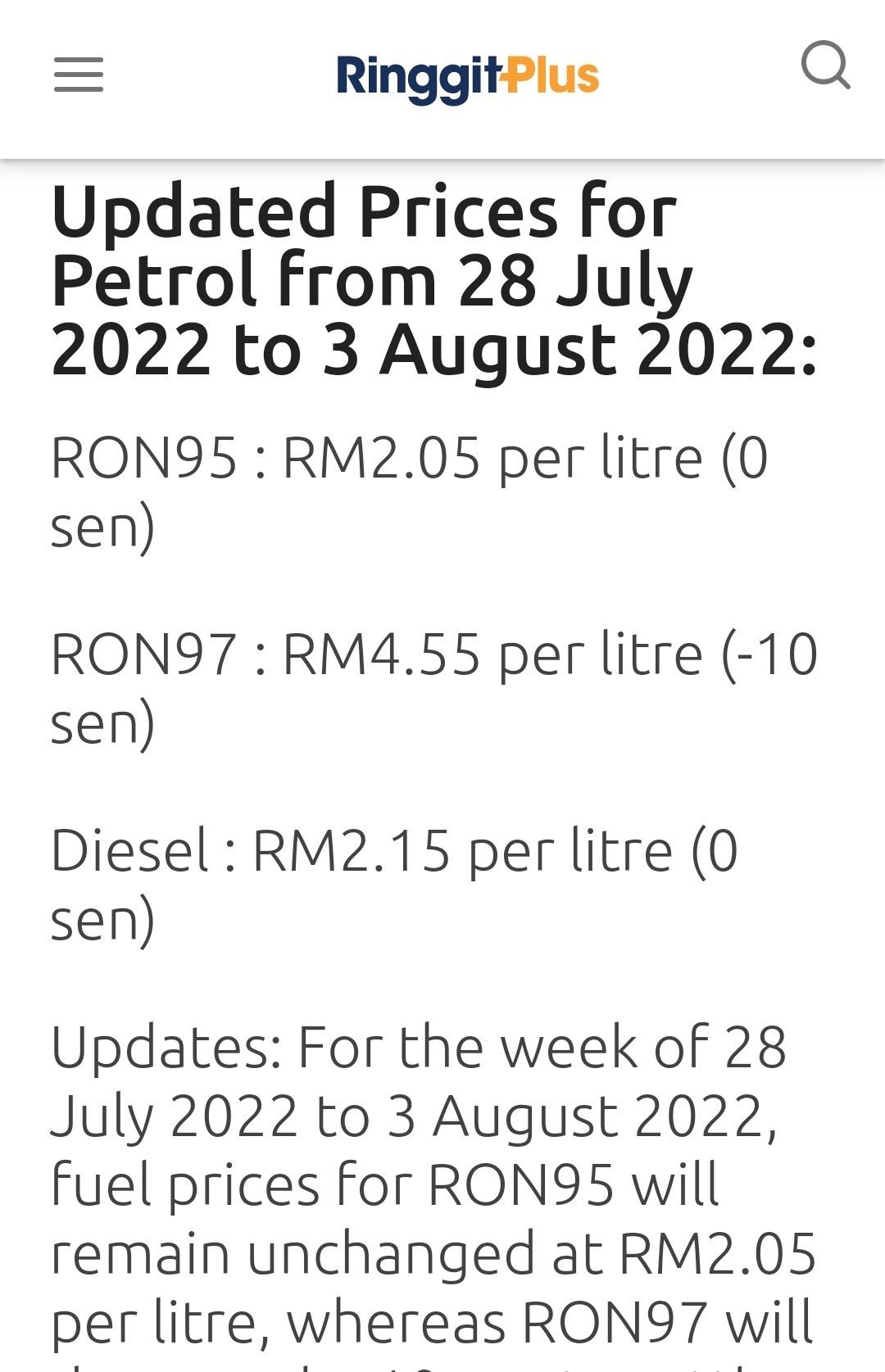 Sinar Harian Ron 95 Dan Ron 97 Kekal Diesel Naik Berita Penuh Di Https Goo Gl I56fv2 Hargaminyak Mingguan Petroleum Ron95 Ron97 Diesel Facebook
