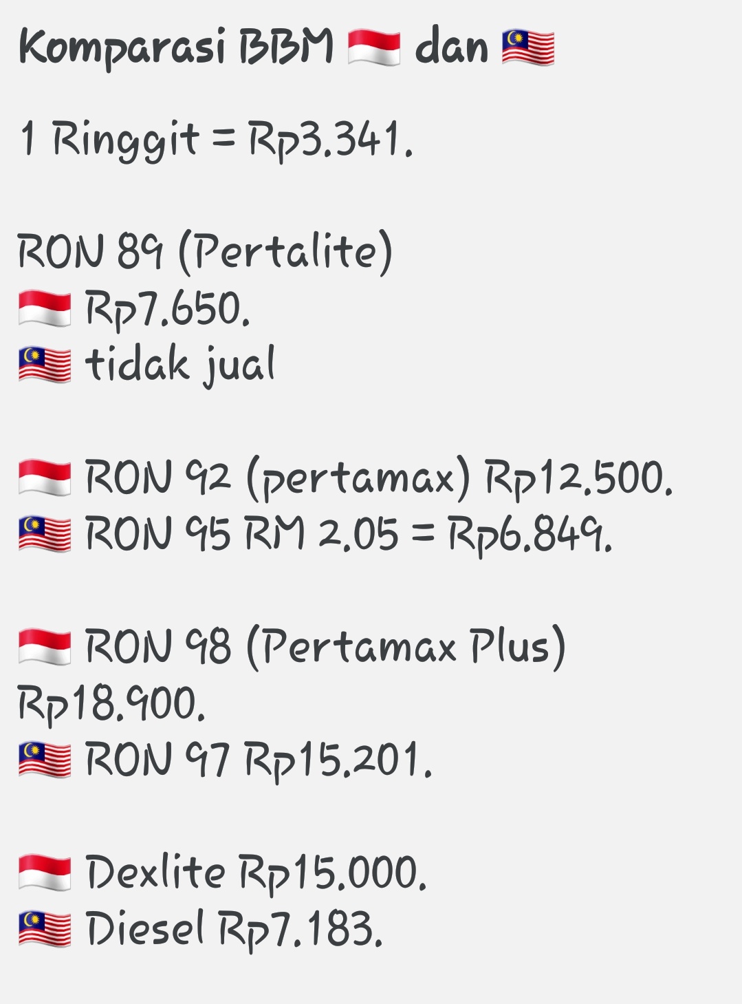 Zulfanny On Twitter Hasilnya Harga Ron 95 Malaysia Rp6 849 Lebih Murah Dibanding Ron 89 Pertalite Rp7 650 Indonesia Dan Harga Bbm Diesel Malaysia Lebih Murah Dibanding Dexlite Indonesia Https T Co Kpls84lnaq Twitter
